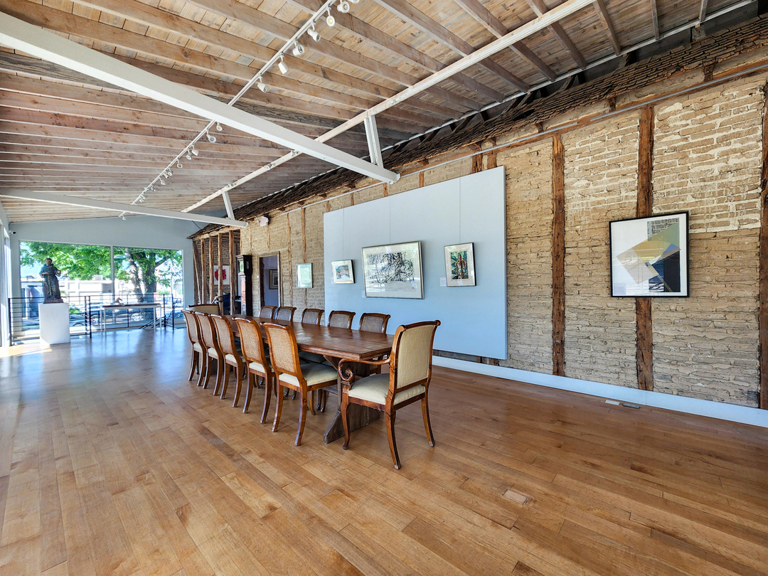 The Meadowlark Garden and Gallery is located at 210 West Mill Street, one of the original German settler lots laid out in 1845. During the majority of the 19th century, the lot was a downtown garden oasis surrounded by residential and commercial buildings. Reconstructed gardens now surround the historic Soechting fachwerk farmhouse, which was brought to this location, restored and expanded with a contemporary addition, purposely designed for the display of fine and rare works of art.