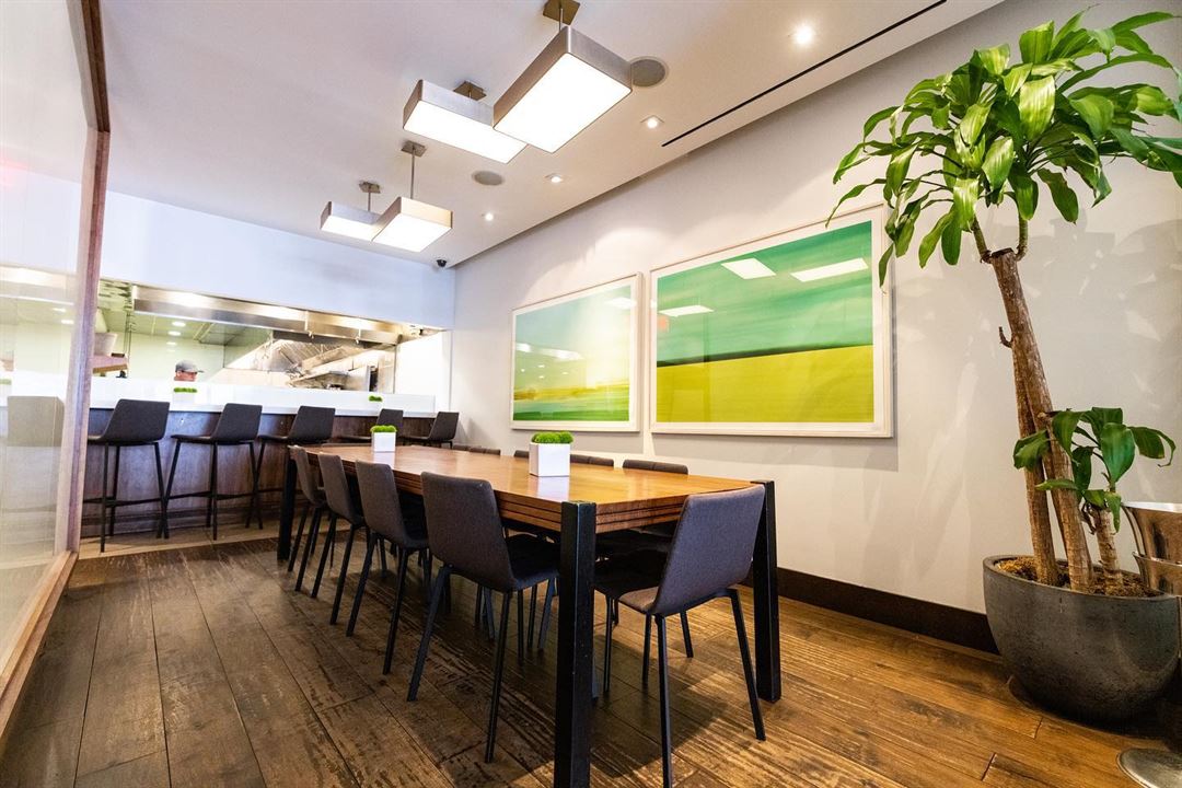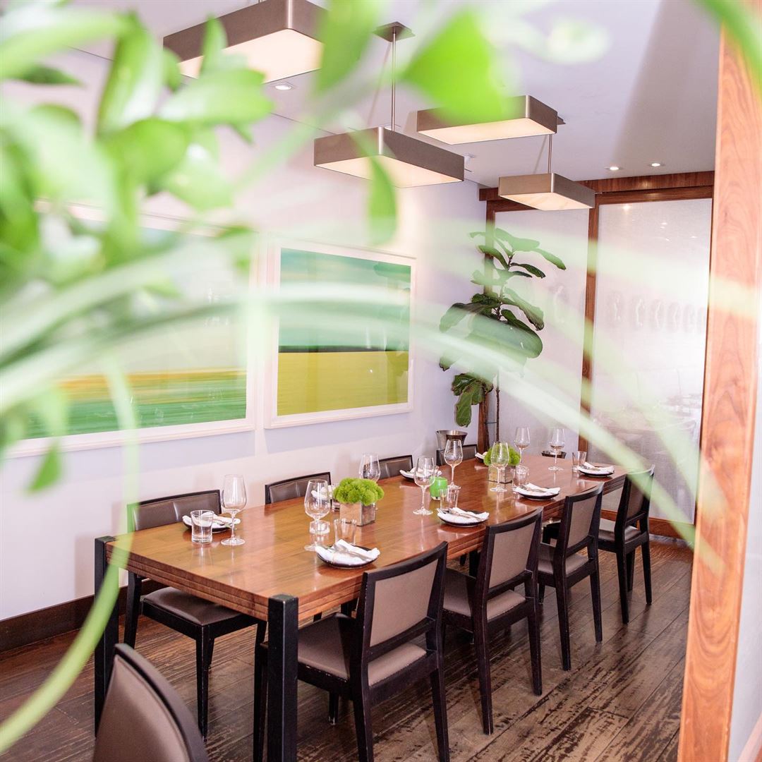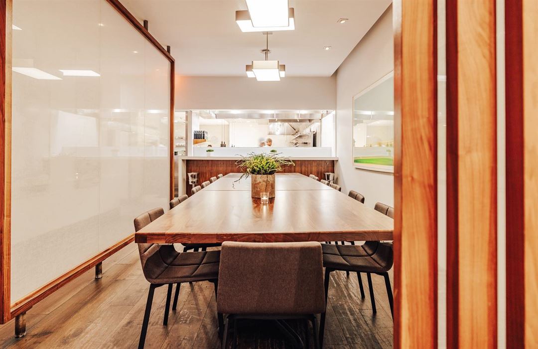 Our chef’s table room overlooks the kitchen and provides an intimate space that features the amenities of our dining room behind the comfort of sliding panels for a cozy setting that’s perfect for celebrations, business dinners, small cocktail parties, and more.