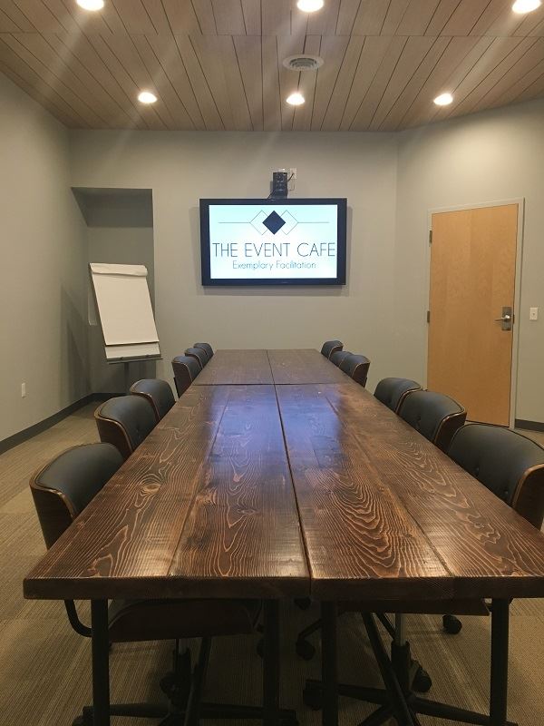 Our unique and sophisticated space in the heart of New Cumberland, PA services professional events such as meetings and receptions - as well as birthday parties, rehearsal dinners and bridal and baby showers- and now small weddings and funeral gatherings in our Little Chapel at The Event Cafe. Conveniently located only 4 miles from the State Capitol, this space features a large conference room as well as a large open foyer for business or personal cocktail receptions and sit-down lunceons and dinners. With a chic industrial feel and flexible floor plan, The Event Cafe can service a variety of both personal and professional event needs. We know there is more to event facilitation than the venue, so we offer event set-up, tables, formal and casual seating, vintage china, speaker and microphone, podium, optional Chiavari chairs onsite, linens and more. Bring your own food, use your own caterer and make use of our catering kitchen, free with the rental of the Sullivan Reception Hall. It is recommended that the Griffin and Sullivan Reception Hall be rented together for events over 40 or more.