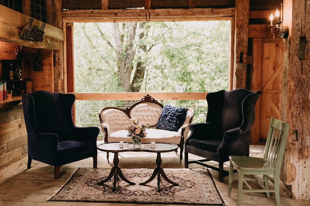 The barn is now a beautifully restored structure perfect for your wedding day, corporate event, or other celebration. The charming 40x50 barn can seat up to 125 guests or stand up to 200 for a more casual dining experience. We pride ourselves on being a ONE STOP venue offering everything you need and taking away any and all stress with planning your day. Let's just have fun! :) The venue includes the farmhouse that sleeps 10, tables, chairs, two bars, loft with seating, wrap around back porch overlooking the grounds, fire pit, ceremony sanctuary with arbor and benches, wedding planning and weekend coordination (a $2500 value!), and SO MUCH MORE!!!