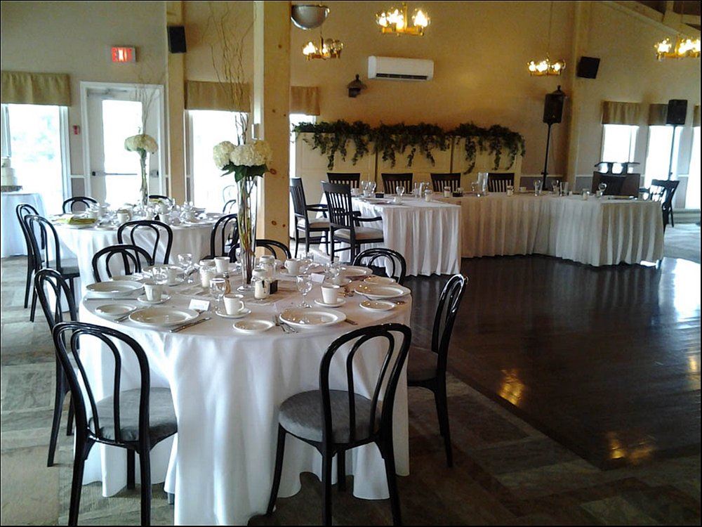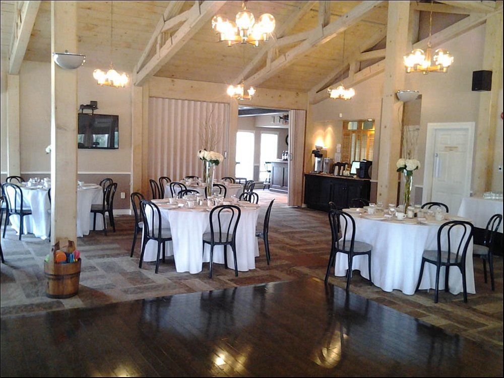 Tall pines and picturesque gardens surround our spacious and modern clubhouse and provide the ideal setting for your next event! The dining room features high wood-beamed ceilings and a large wrap-around deck that offers lovely views of our lush golf course. Our dedicated and experienced staff is committed to working with you in planning everything!