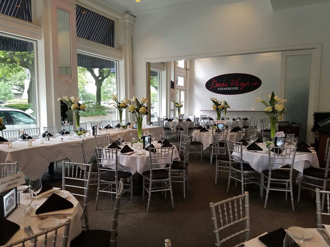 We have a place just for you at Desi Vega’s! Dining in our spectacular main room overlooks the historic St Charles Avenue Streetcar line, the architectural pillars of Gallier Hall and majestic oaks in Lafayette Square or for a more private affair, our Prime Room has a chic background with floor to ceiling windows and is the perfect ambiance for cocktail receptions, business socials, rehearsal dinners, graduation parties and more. Let Desi’s create memories to last a lifetime!
