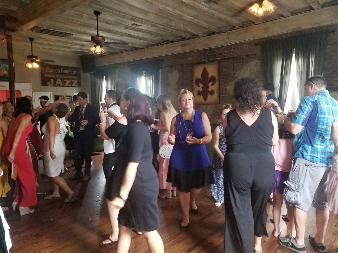 The Jazz Parlor at Maison Bourbon is located on the 2nd floor and can be rented out for private events. This beautiful space was refurbished, keeping much of its grandeur…exposed brick and plaster walls, beamed ceilings and seven French Windows/Doors leading out to an expansive balcony which wraps Bourbon and St. Peter Streets. It has a relaxed vibe with beautifully upholstered oversized chairs and small cocktail tables. There is a large double door on second floor which conjoins with My Bar@635 for larger events.