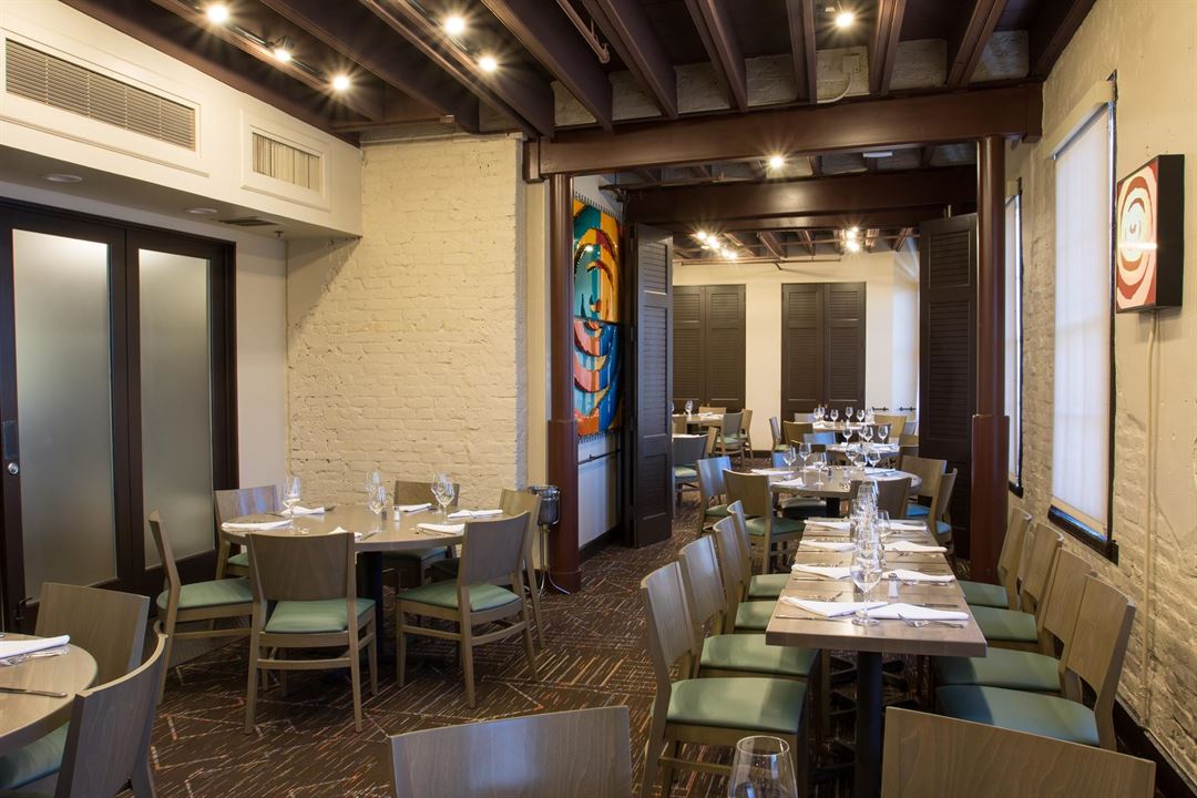 The Private Events Room on the 3rd floor is a fully private room that accommodates up to 75 guests for a sit-down lunch or dinner.