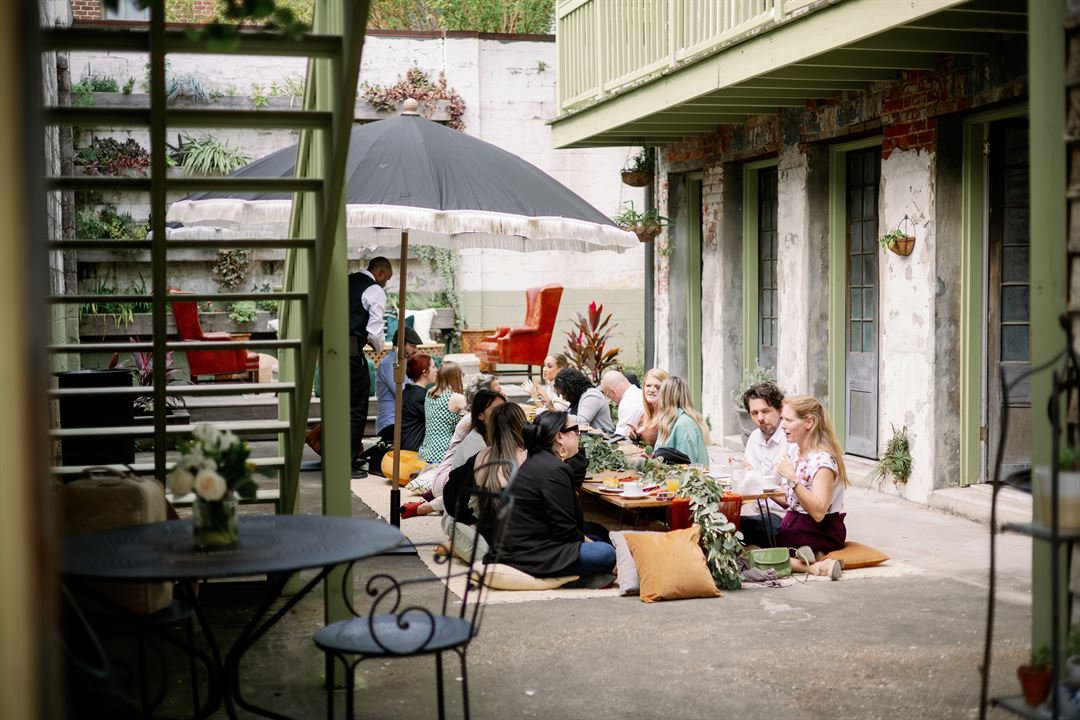 Soulet Muse is a 150+ year old A cozy 1850s event space and guest house on historic Magazine Street. It's a Garden District dream filled with exposed brick, antique floors and hardware, and a charming historic feel.