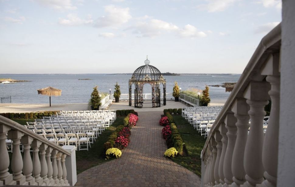 Our ballrooms are a perfect fit for your ceremony or celebration. Your guest will be impressed with the architect and the warm ambient lighting throughout our Seaside Mansion. The drive up with the pulsating water in the reflecting pool and the statuesque fountain, along with our beach front is the perfect place for those memorable wedding pictures. The dining area and cocktail space has views of the Long Island Sound and our beach.