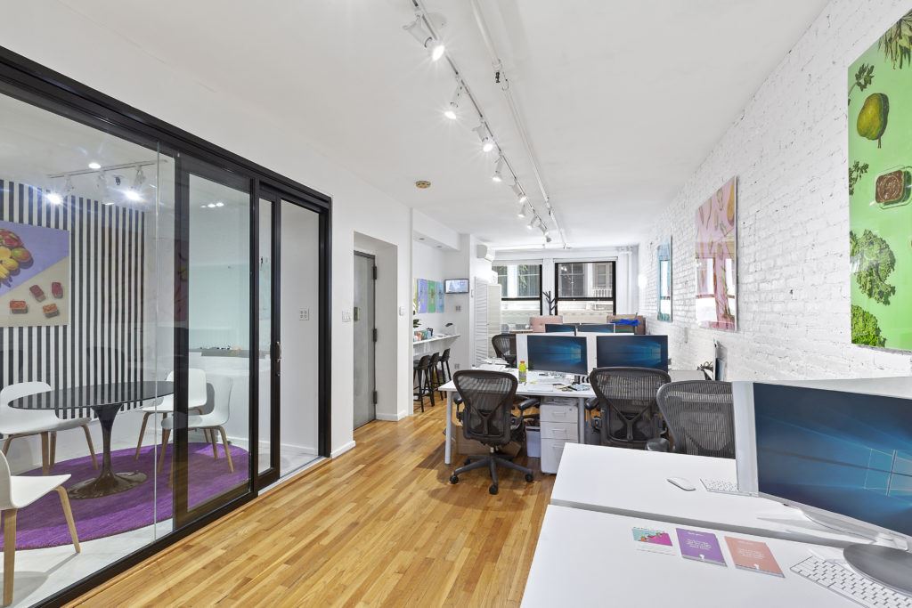 This office has access to our other building called Cubico in Soho near springs street. This office has a 24/7 entrance plus elevator access directly to each floor. The floors are brightly illuminated with natural light coming in from the Northern and Southern parts of New York City. This office has door phones with a security system built into it. Beautiful space with kitchen area and well lit living room area.