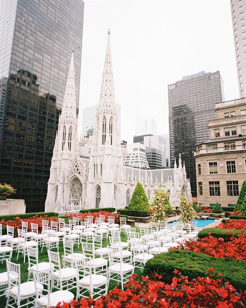 This unique venue features extraordinary views of Fifth Avenue and St. Patrick’s Cathedral from a manicured historic garden, complete with a sparkling reflective pool. A tented area in the garden keeps the party going year round.