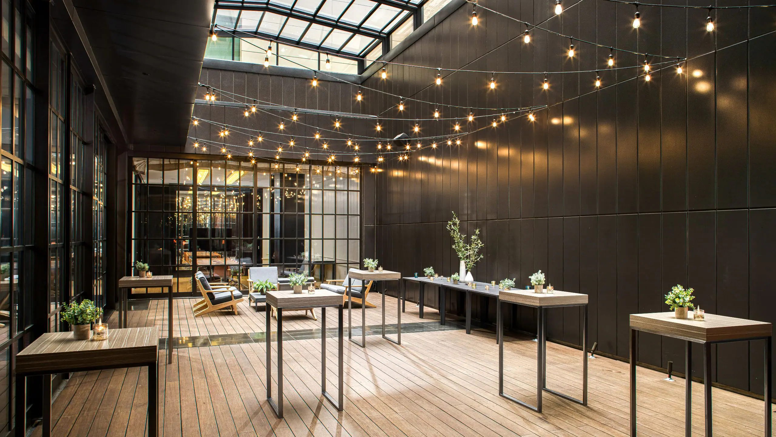 Designed to feel like your own New York loft—complete with an open kitchen and outdoor area—Apartment 2E delivers easygoing service in stylish spaces. Create a spontaneous mood with community tables and lounge seating, or plan a more formal board meeting. Our largest space hosts a reception for up to 160.