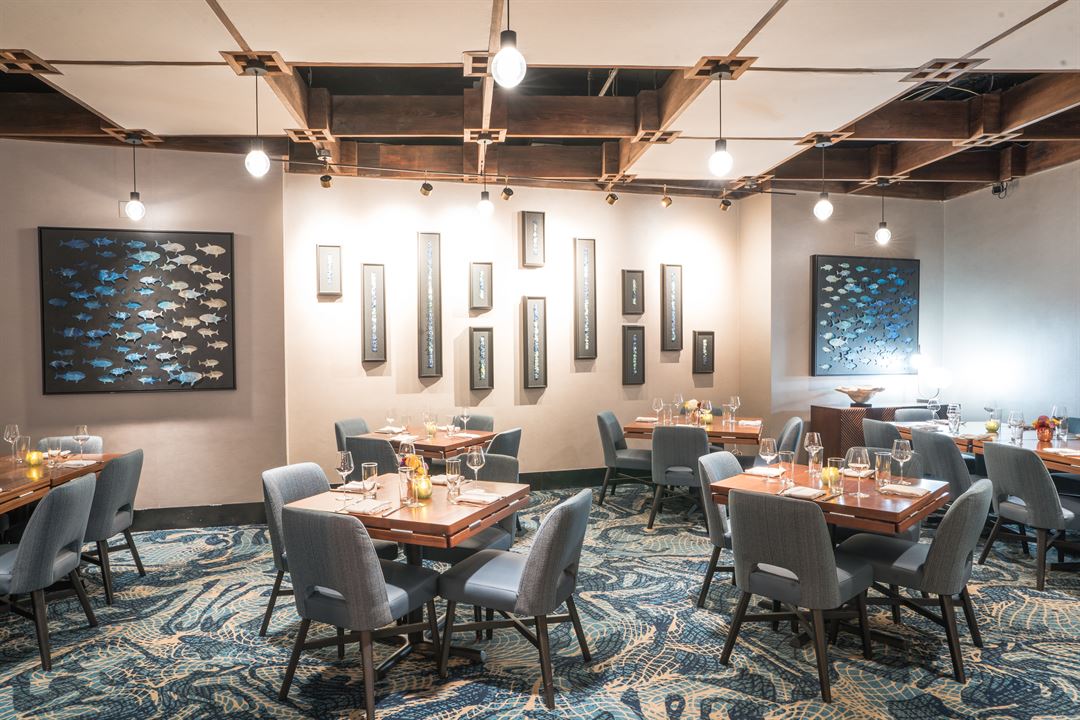 A MODERN seafood and sushi restaurant, where Broadway energy meets quiet sophistication. Pre- or post-theater dining, for business or pleasure, Blue Fin’s dramatic design and exquisite cuisine make it the perfect destination for dining and events,