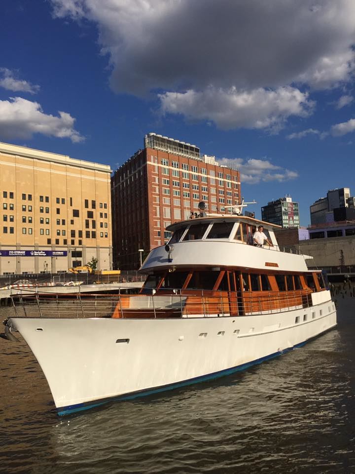 The enclosed, upper deck pilothouse has day bed seating for eight and an after deck seating for nine guests. Accommodations for five guests, in 2 staterooms with two en suite heads are available for special arrangements term charters. The mid-ship engine/laundry room separates the quarters (two cabins and dinette) from the guest suites, which are each accessed from private companionways. The summer cruising areas include the Long Island Sound and New York Harbor/Hudson River.