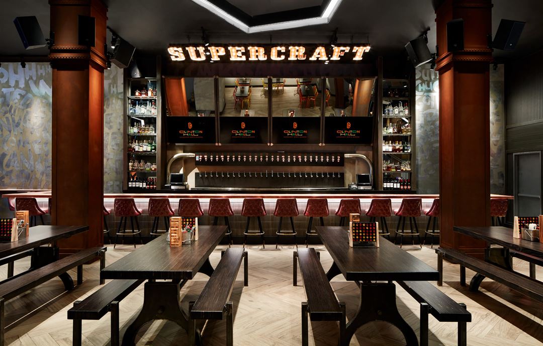 Clinton Hall’s newest location is just mere steps from MSG, Penn Station, Port Authority, The NJ transit and Theater Row to make for easy access from any part of the tri-state area! From our mezzanine level, enjoy a view of the Empire State Building and downstairs indulge in a Supercraft Beer and one of our many giant wall games!