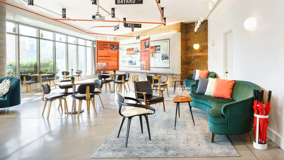 1,500 square foot gallery space featuring floor to ceiling windows overlooking the Manhattan Bridge with exclusive access to the Atlantic Garden.