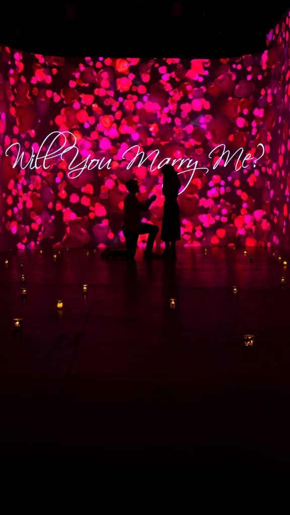 Immersive Engagements creates private, luxury proposal experiences in New York City. Hosted inside SHIFT Midtown’s immersive event space, each celebration surrounds couples with 360° projection mapping, romantic ambiance, and fully custom design. From curated packages to bespoke cinematic moments, we craft unforgettable “yes” experiences tailored to your love story.