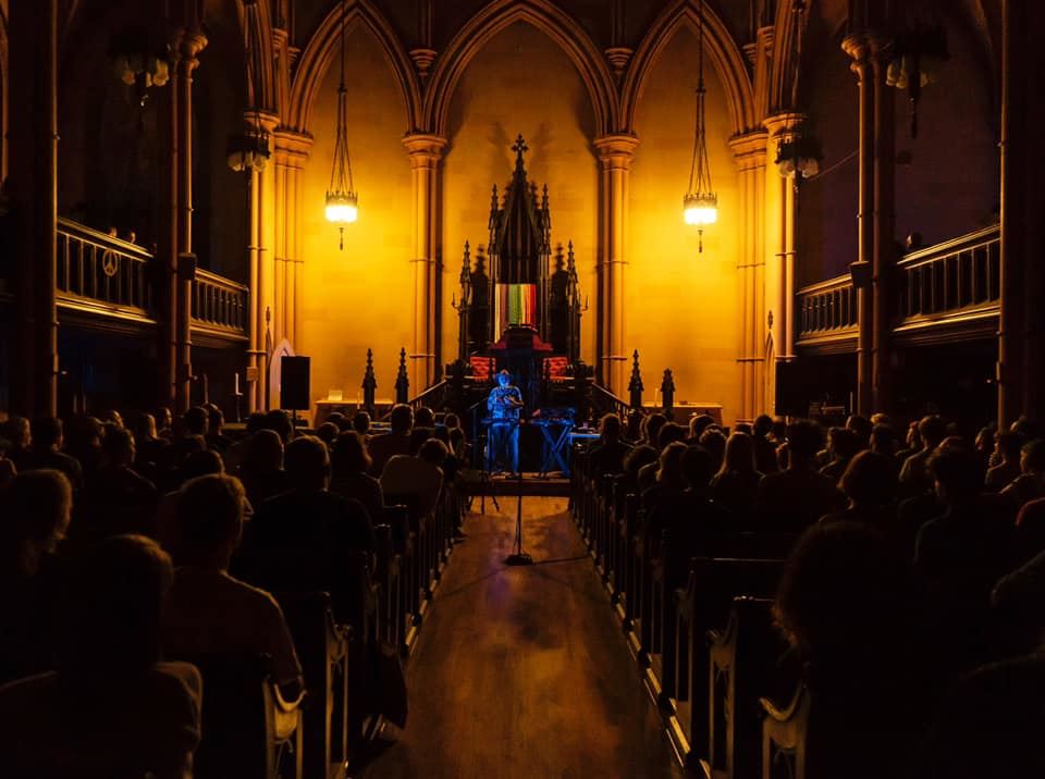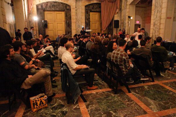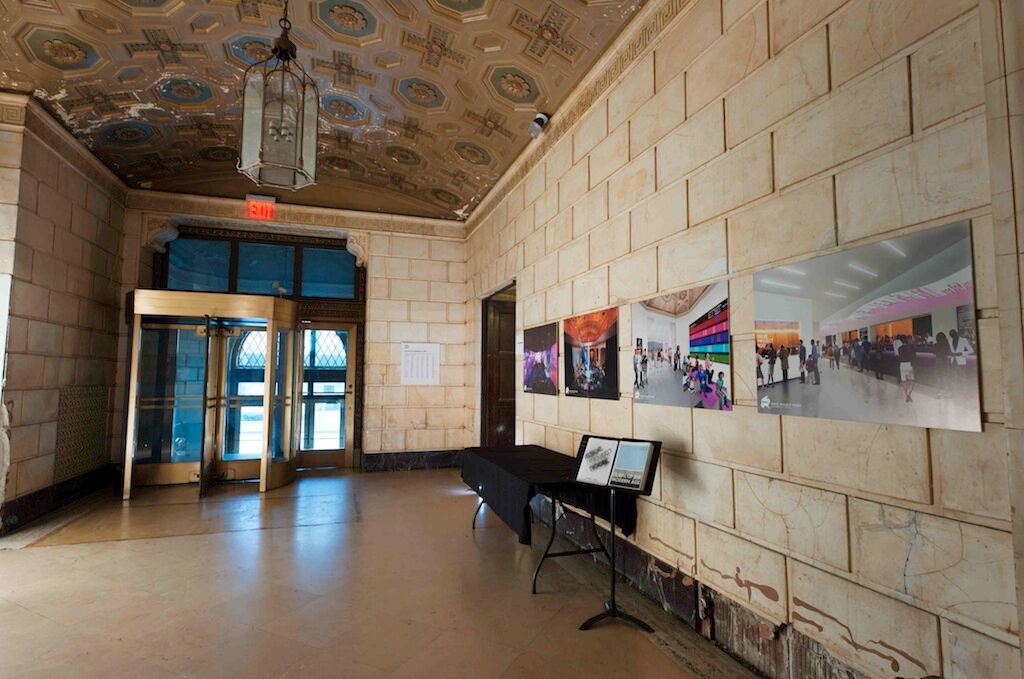 Originally built in 1926 as the headquarters for the Beevolent & Protective Order of the Elks, ISSUE Project Room features a limestone and terra cotta facade, with Renaissance-revival style features including balustrades, egg-and-dart ornamentation, Corinthian columns, and a theater space with 40-foot vaulted ceilings.