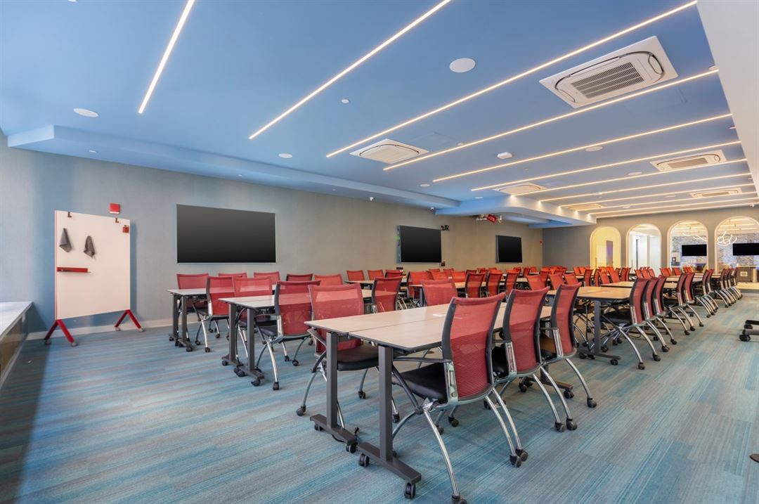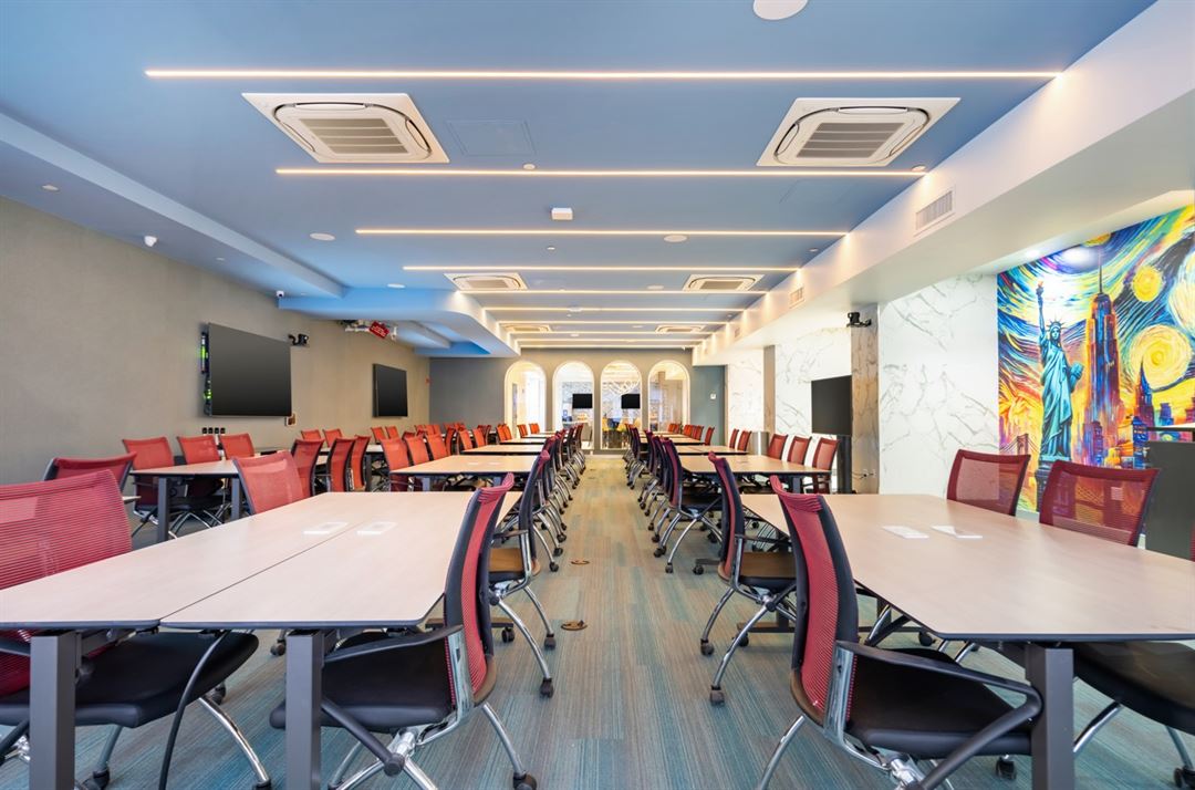Jay Conference Empire is a premier 13,000-square-foot conference center designed to inspire creativity and innovation. Located in the heart of Manhattan, this art-themed venue blends sophisticated design with a vibrant ambiance, featuring curated artwork and a large, state-of-the-art video wall at the entrance for eye-catching digital signage to welcome guests and showcase branding. The space is versatile, accommodating multiple companies simultaneously or offering the option for a full buyout, making it ideal for exclusive use by a single organization. With state-of-the-art presentation technology, soundproof rooms, and flexible layouts, it’s perfect for everything from team meetings to large-scale events. Professional meeting planners and customizable gourmet catering ensure a seamless and unforgettable experience. At Jay Conference Empire, every event becomes a work of art.