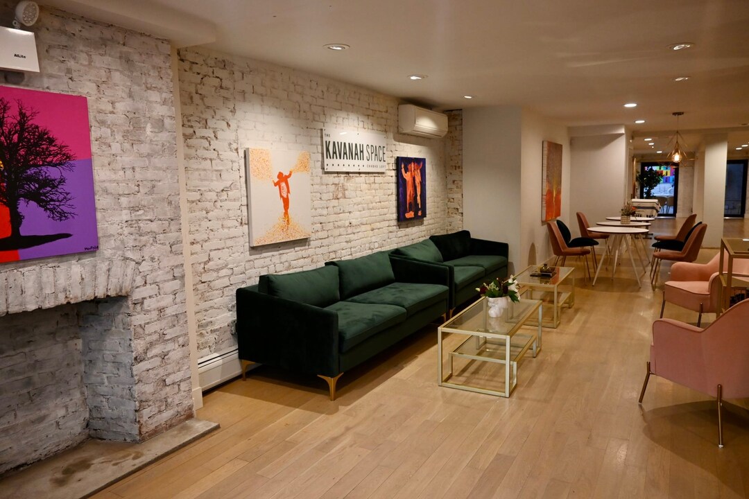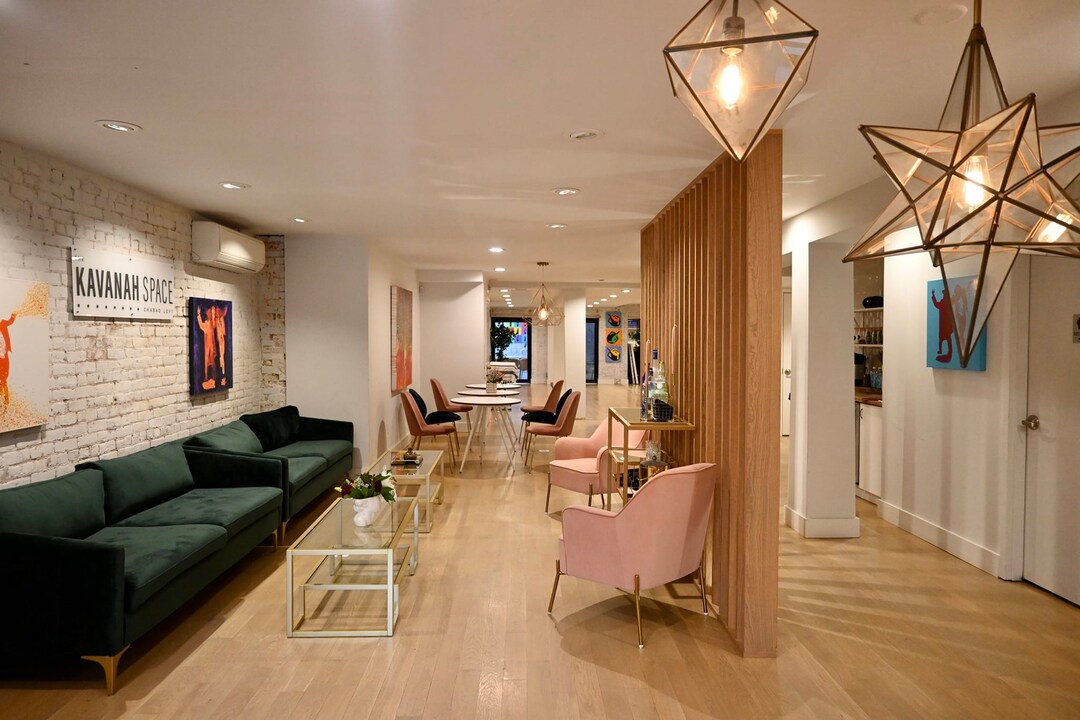 Spanning 2,000 square feet, our venue features three distinct areas designed to inspire productivity and comfort. The first area is a cozy lounge with plush couches, seating, small tables, and an office kitchen. The second area boasts exposed brick walls and a versatile open layout that can be arranged for sit-down sessions or left open. The third area, with an exposed ceiling and abundant natural light, makes a perfect conference room.