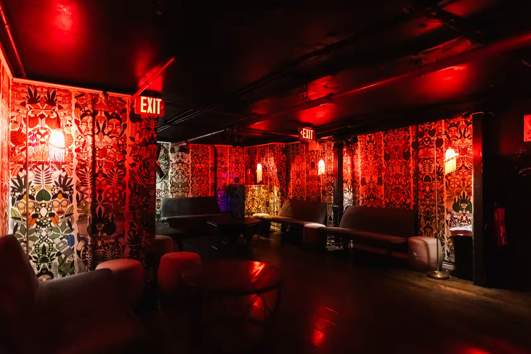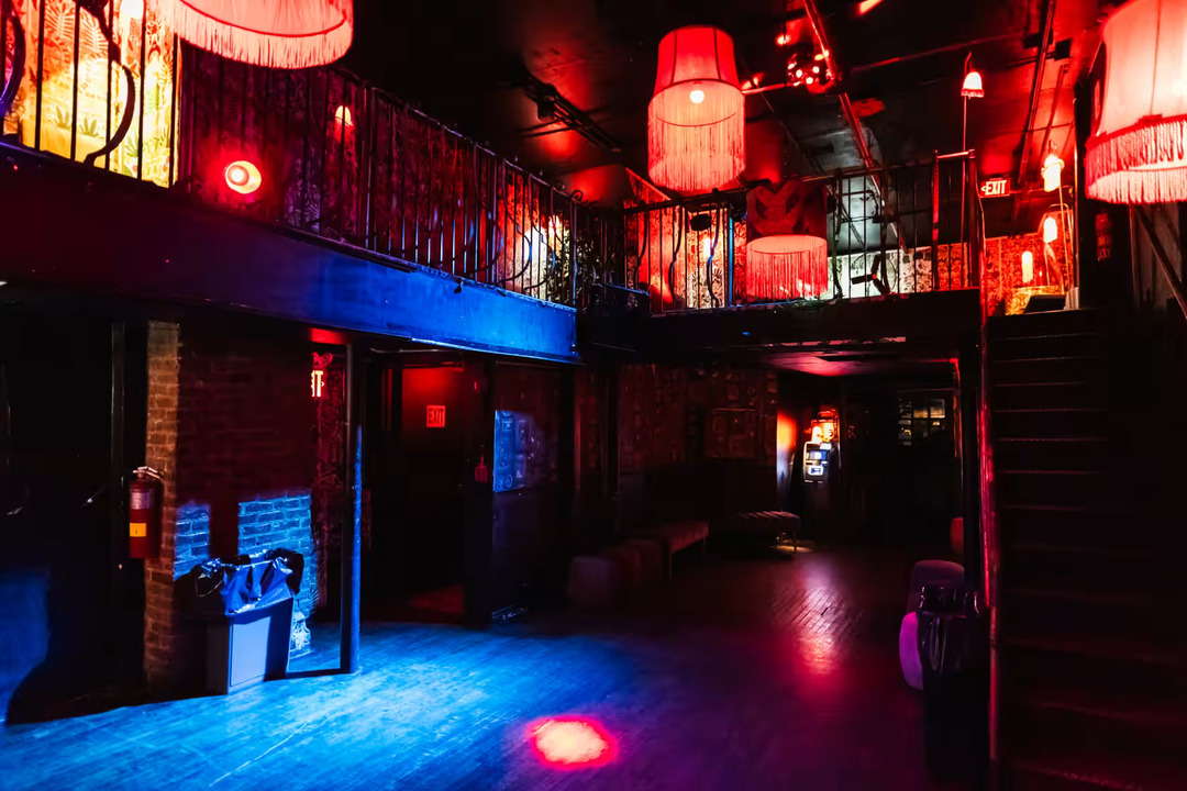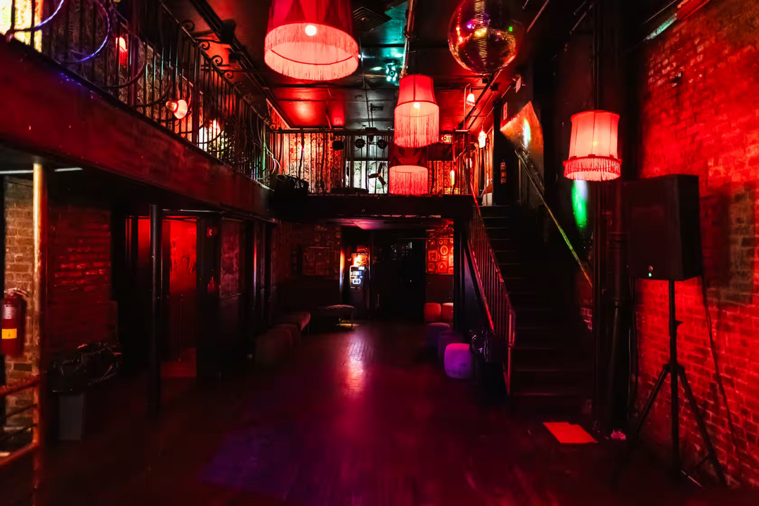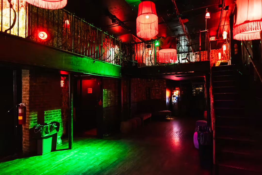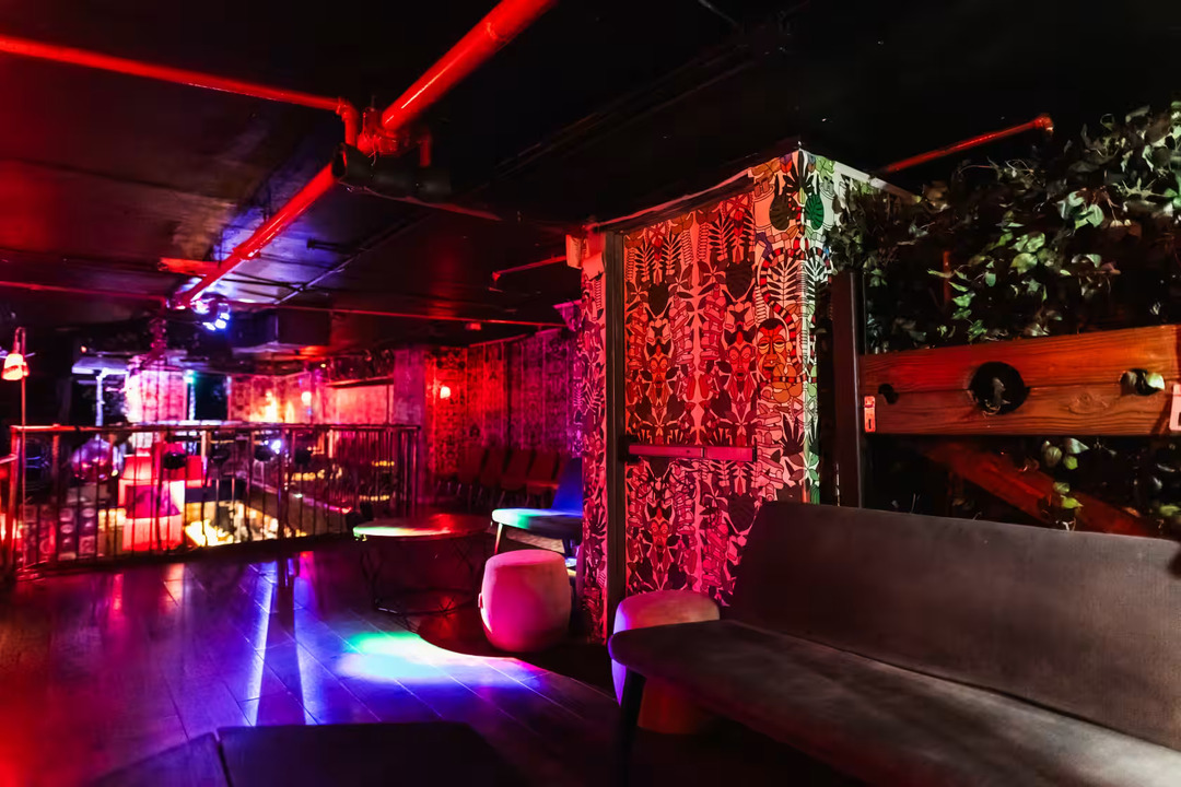 • Ambiance: A multi-level space adorned with eclectic decor, vibrant neon lights, and rustic brick walls, creating a lively and theatrical atmosphere.