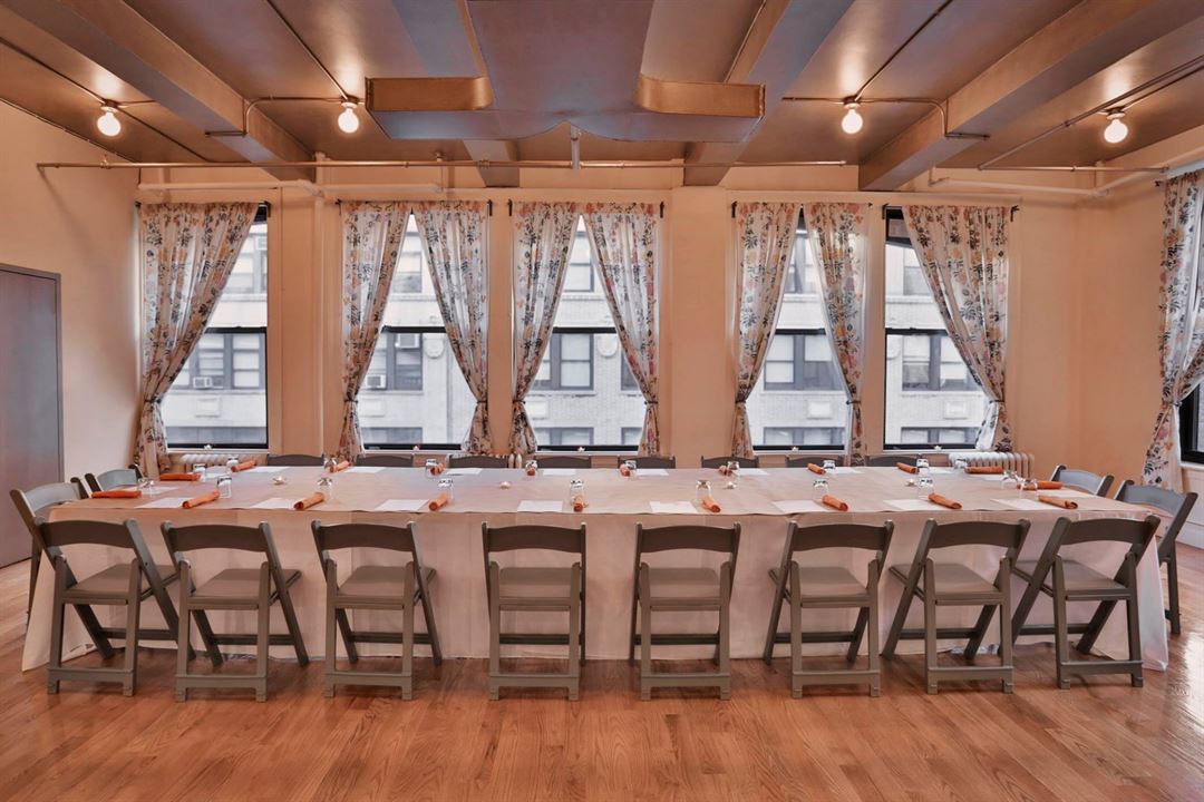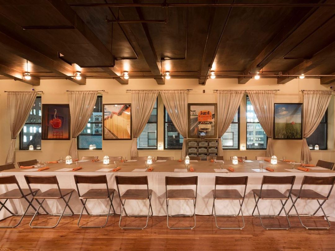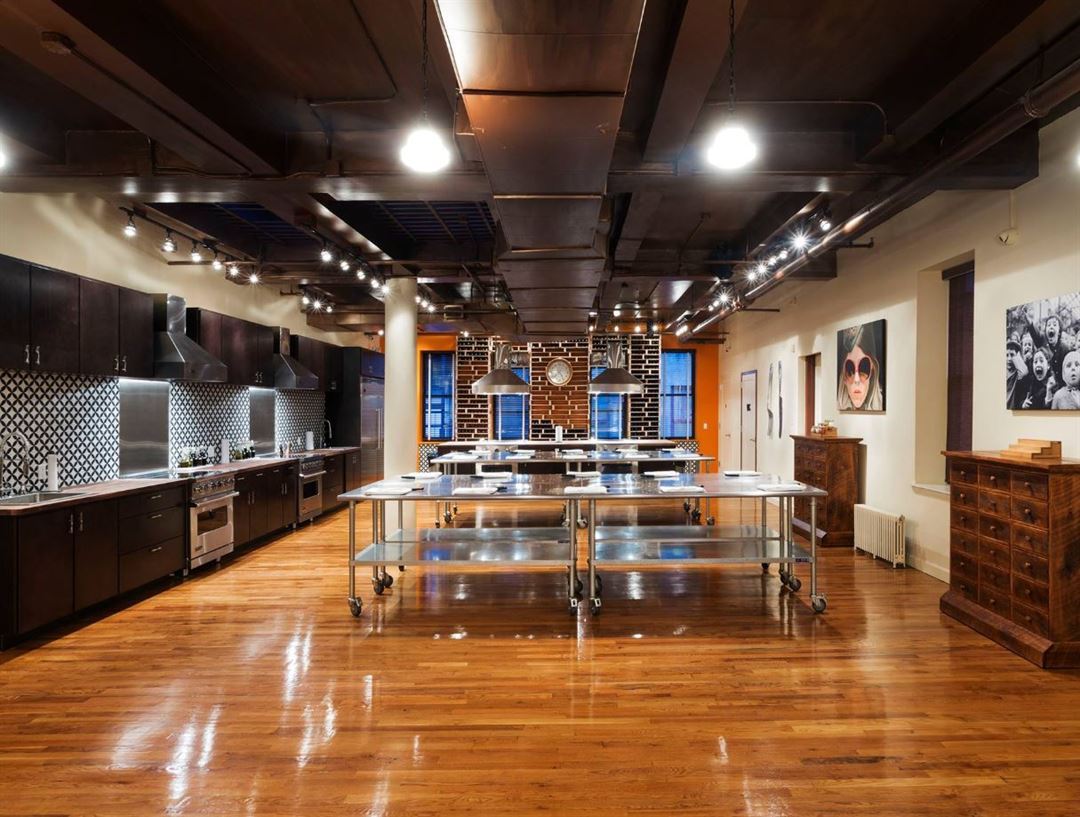 Our Flatiron Loft is a mix of rustic and industrial with gorgeous butcher block counter tops, exposed copper-colored pipes, and maple-brown wood flooring. Unique art pieces give the space a touch of whimsy without ever distracting from the main event.