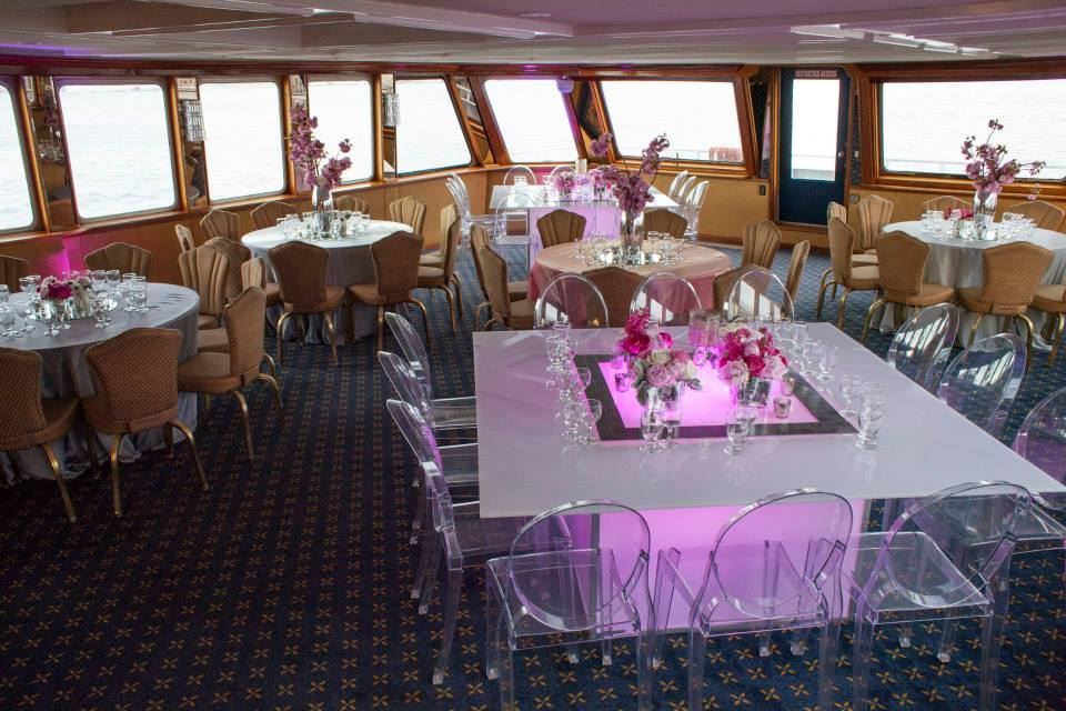 Royal Princess a spacious tri-level yacht with additional private executive suite, perfect for guest counts small and large – from up to 75 – 180 guests. We are based at the Lincoln Harbor Yacht club in Weehawken, New Jersey, directly across from Midtown Manhattan. We can easily pick up guests at locations in New York City including Chelsea Piers, Pier 81, and Battery Park City.