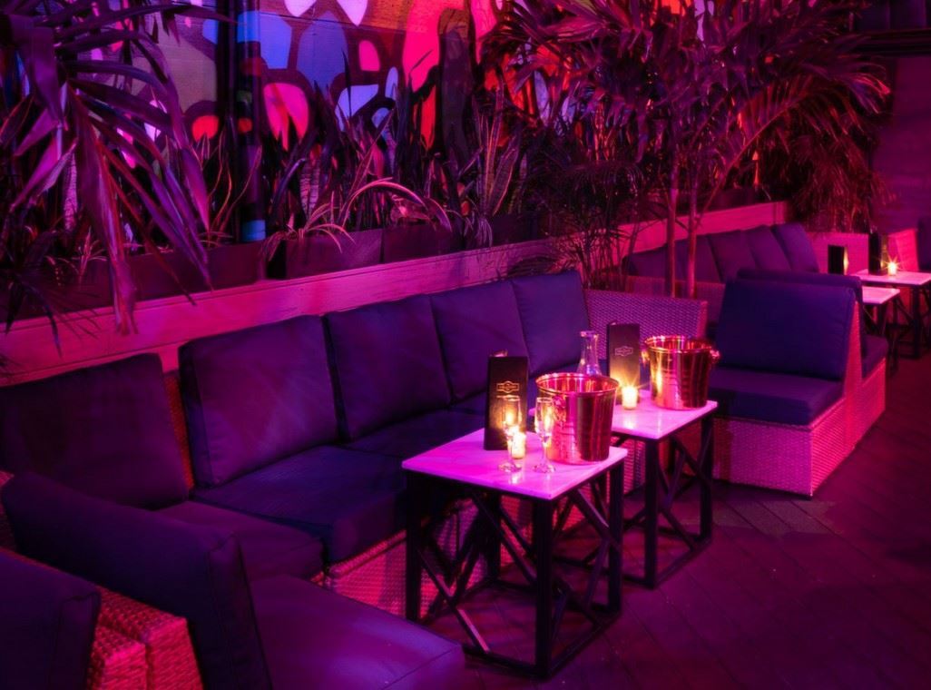 • Ambiance: Candlelit bar, red velvet booths, chandelier-adorned VIP lounge, DJ booths, and a