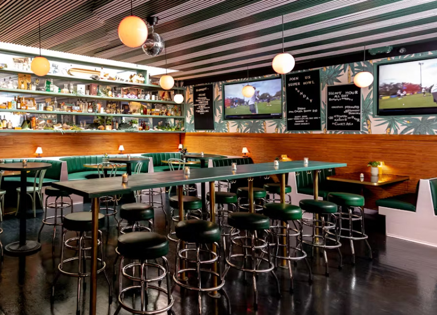 The Happiest Hour is a whimsical cocktail bar and full-service restaurant. Its “You pick ‘em, we pour ‘em” motto drives a non-judgmental drinks menu in a breezy space, adorned with cartoon palm trees, that evokes bygone California and Florida resorts. Anchored by an award-winning burger, the elevated diner-style food offering also features sandwiches, chopped salads, and an array of sides- simple, yet highly satisfying, and classically American. A rock and soul soundtrack completes the mood.