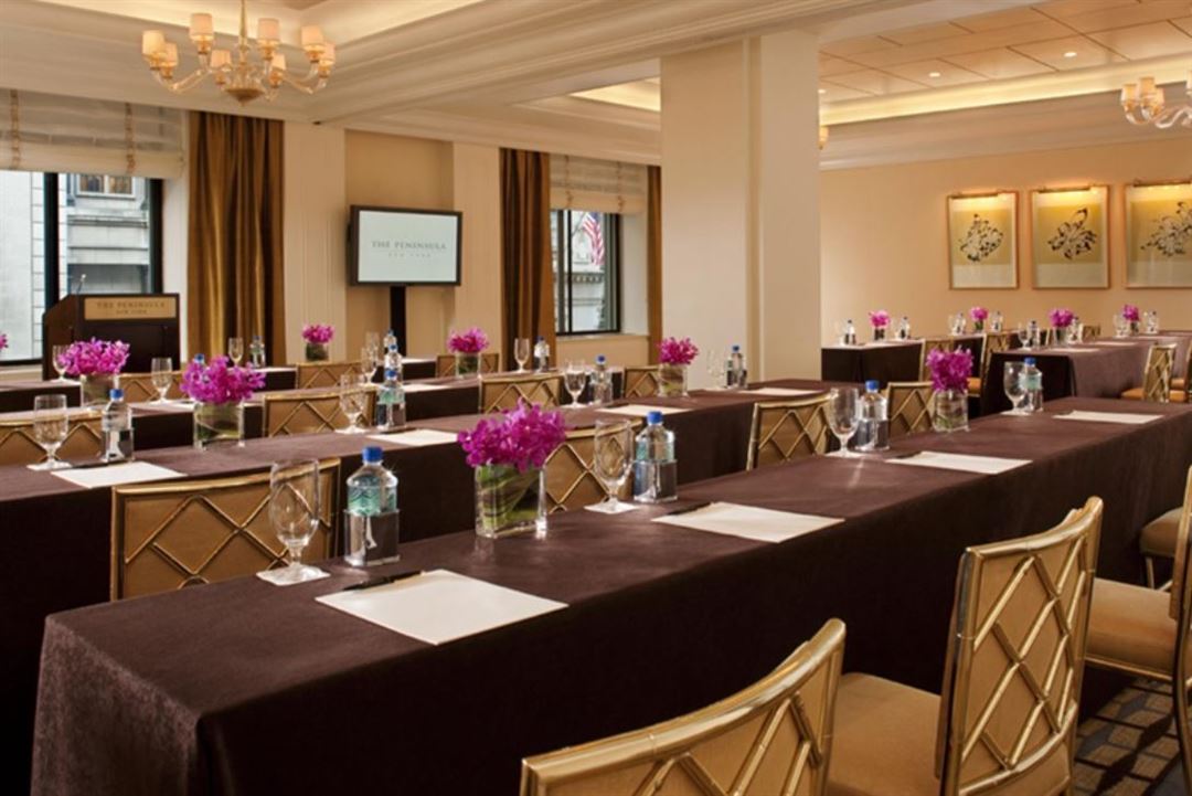 For high-profile events, executive meetings and special celebrations, The Peninsula New York seamlessly blends elegant facilities and expert event planning. Every detail is meticulously tailored to suit the occasion and enhance even the most extraordinary affair. Decorated in modern, stylish elegance, the five completely refurbished function rooms and receiving areas encompass 3,300 sq ft (1,006 sq m) and are intimately scaled with residential-style furnishings and bespoke appointments.