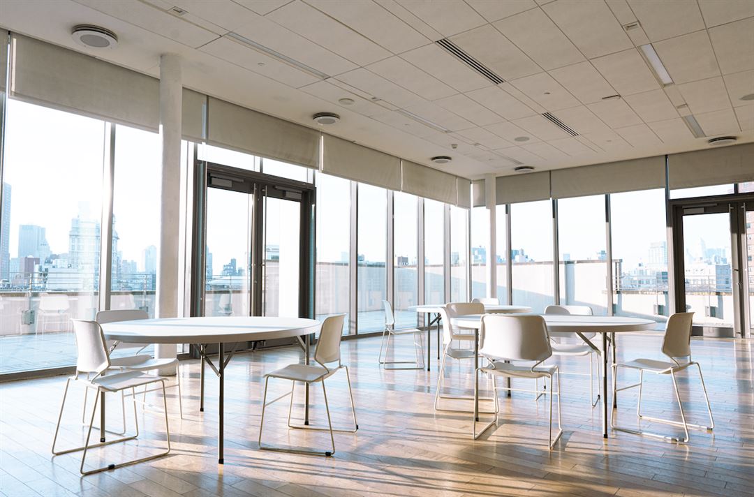 The Rooftop at MCC is the ideal venue for your wedding, corporate or community event, and other celebrations. Our space is an open floor plan with a large wrap-around terrace, and floor to ceiling windows. The space also includes a large catering pantry, two multi-stall restrooms, dressing room or greenroom, and a large coat closet.