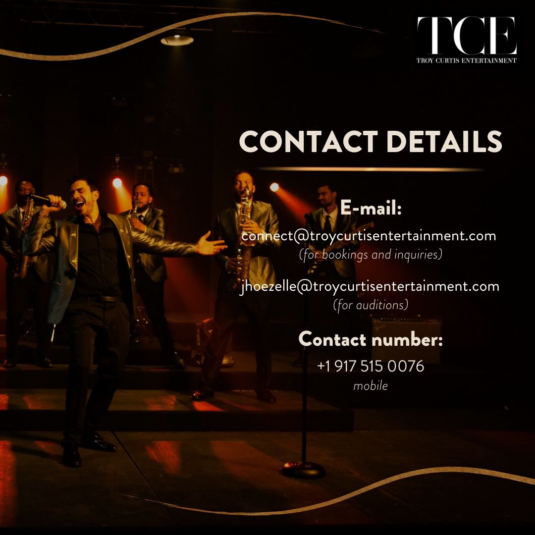 The Troy Curtis Orchestra—TCE flagship band—ranges from a dynamic 3-piece ensemble to a show-stopping 30-piece orchestra and everything in between. Playing songs from today’s Top 40, American Classics, Latin, Motown, and hits by the decade, the Troy Curtis Orchestra has the repertoire and experience to meet your vision and elevate the ambiance of any event.