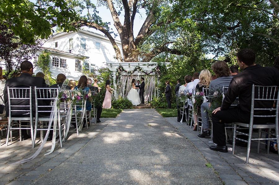 Nestled in a picturesque valley of farms and orchards, in the quaint town of Newcastle, California, a turn-of-the-century white mansion sits on over two acres of secluded and manicured lush lawn and gardens on a private twelve-acre estate. Heritage oak trees and granite boulders with a cascading waterfall provide a tranquil backdrop for your ceremony.