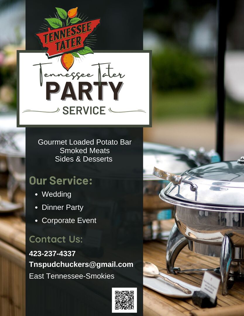 Tennessee Tater is your go-to catering service specializing in gourmet loaded baked potato bars and succulent smoked meats. Committed to delivering delicious, memorable dining experiences, we bring a unique twist to any event, from corporate gatherings to celebrations of life’s milestones. Our customizable menus feature perfectly baked potatoes topped with a variety of mouthwatering ingredients and slow-smoked meats that tantalize the taste buds. With a focus on quality, flavor, and fun, Tennessee Tater is dedicated to making your event unforgettable. Let us serve up a delicious experience that your guests will rave about!