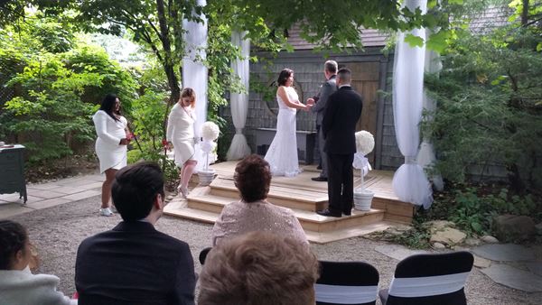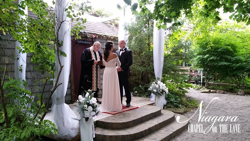 Our indoor Wedding Chapel is located in the "Honeymoon Capital of the World" Niagara Falls on famous Lundy's Lane. Tastefully designed with a classic wood burning Fireplace and Skylight open all year long and a Seasonal Rose Cottage Garden Chapel - end of May to Oct 31.