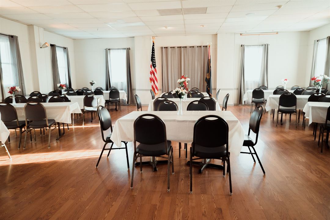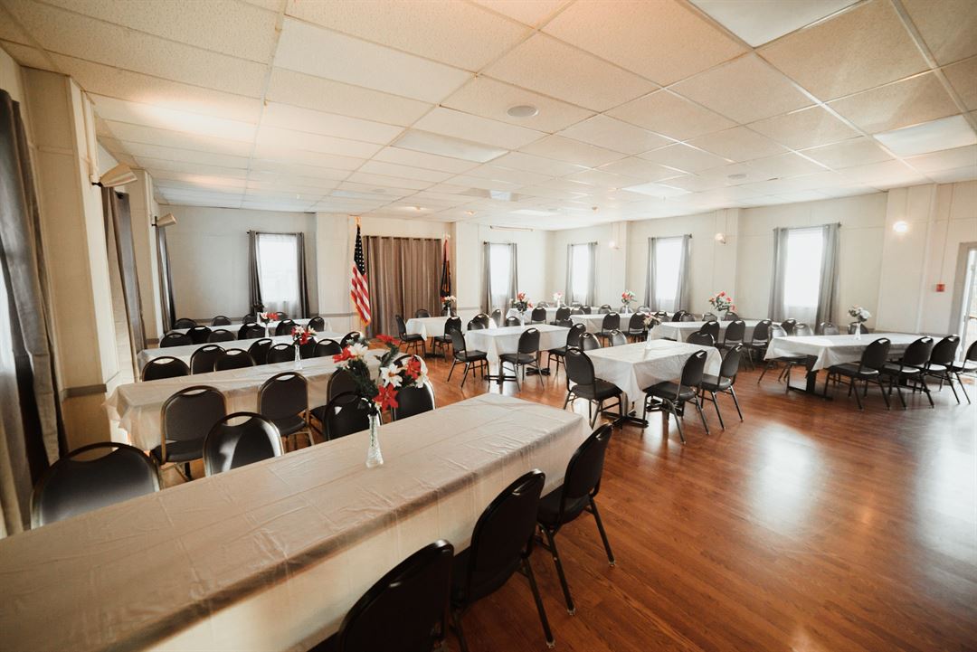 Event Hall for rent. Hall, Tables, Chairs for 128. Great for Wedding Receptions, Birthdays, Holiday Parties, Reunions, Memorials, Workshops, Meetings, Promotions and Retirements. Multipurpose hall with commercial Kitchen available. Full-Service Bar with Bartenders. Hall - $300 and the Kitchen for & 175.00 extra if needed.