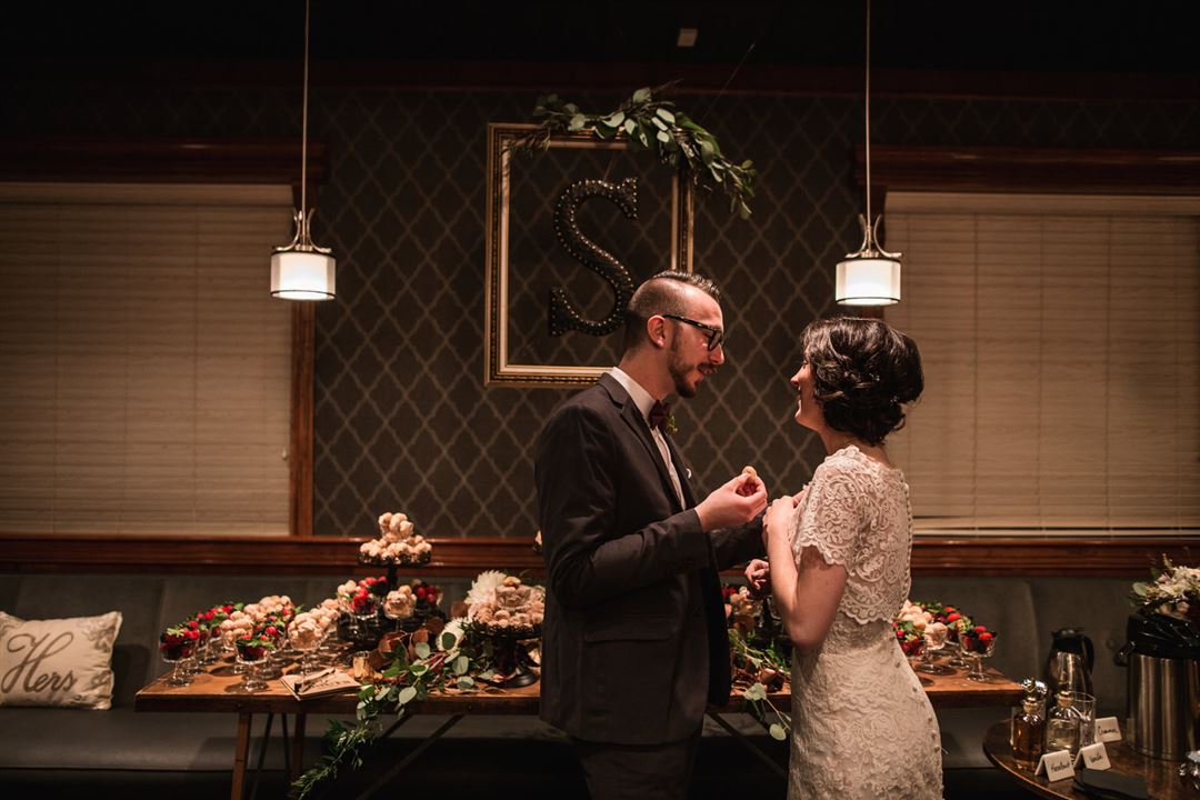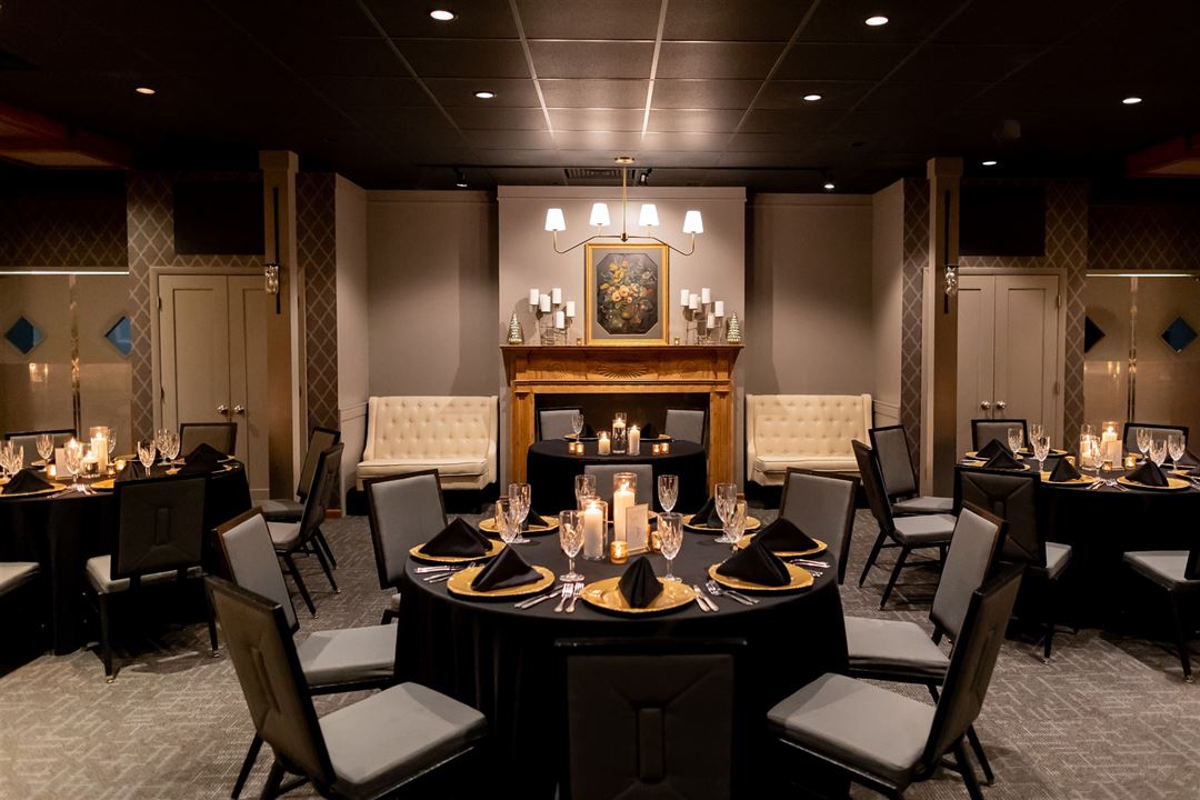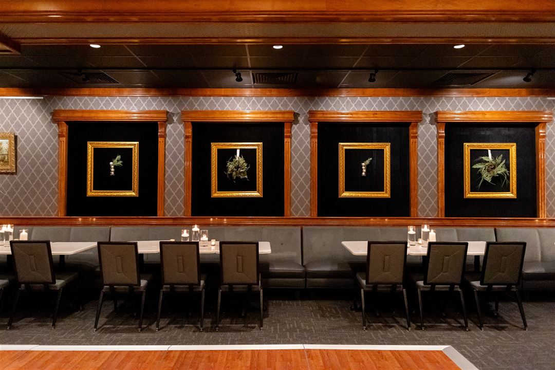 Gallery 1245 offers an intimate space for you and your guests to celebrate. Modeled after vintage supper clubs, this private venue presents a classic design punctuated with ritzy accents to create the jazzy atmosphere. Chandeliers sparkle from the ceiling while velvet banquettes provide cozy seating. Fabric accents add hints of glamour and complement the rich wood tones throughout the dining room, and bar. The wood dance floor is the perfect space to dance the night away!