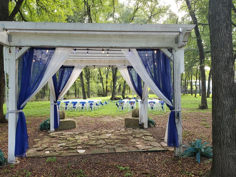 Situated with the Little Nolan Creek on the East and the Nolan Creek bordering the North end of our property, our 11 acres features beautiful vegetation and wildlife, providing peace, tranquility, and a lovely background for any occasion.
