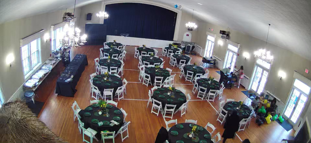 Looking for a unique and memorable setting for your next event? The High Lane Club, a designated historic landmark in North Haven, Connecticut, offers timeless elegance and modern amenities in one distinctive venue. The clubhouse features a spacious ballroom with a stage, adjustable lighting, and original hardwood floors, which opens onto a covered deck—also equipped with lighting—that overlooks the beautifully maintained grounds.