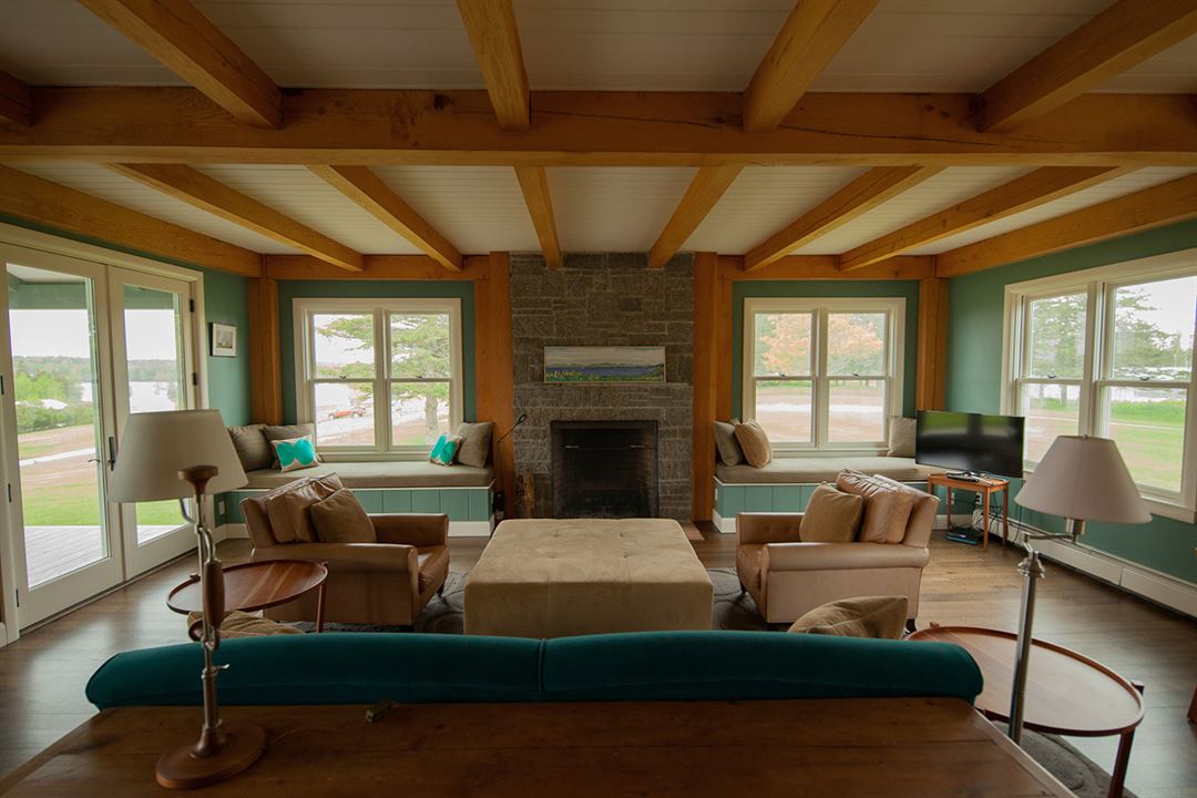 Nestled between the vegetable fields lies our specially-designed ceremony site with wooden benches and a birch arbor. Surrounded by rolling hills and dazzling views of the Goose Rock Lighthouse and neighboring islands, it is the perfect place to say ‘I Do’. Featuring high ceilings, wood furnishings, and long communal dining tables, the enchanting post-and-beam barn space radiates a feeling of rustic warmth and splendor.