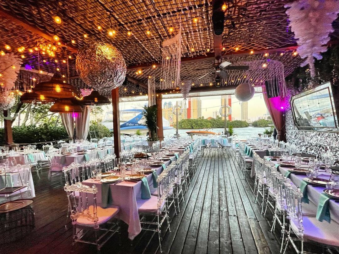 LIQUE Miami seats a total of 180 guests, with 80 inside, 100 waterfront terrace exterior and additional seating in lounge. The Venues décor is reminiscent of South of France glam our with Miami accents—loungy and chic, yet relaxed ambiance.