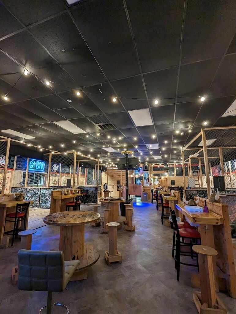 The Famous Jack Axe Entertainment. 5k square feet of drinks, food, music, dancing and world class entertainment. We offer axe throwing, 600 sq foot LED interactive game floor (Floor is Lava), Golf Simulator with 20 x 10 foot screen, also great for showing your pictures and videos. Or lights and lasers can create a great dance floor and environment. Or during the day can be a straight great event space. Our bar has a great selection of over 65 kinds of beer. Great for parties, corporate events, team building.