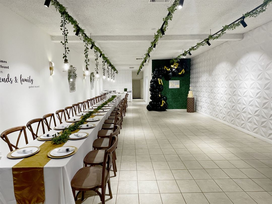 Awesome, sweet place to have a small event for 50 people. No need for Dj , they have a nice speaker for playlist , a kitchen, a room to set up a dessert/ candy table /catered food and a small back area for a taco guy to set up!