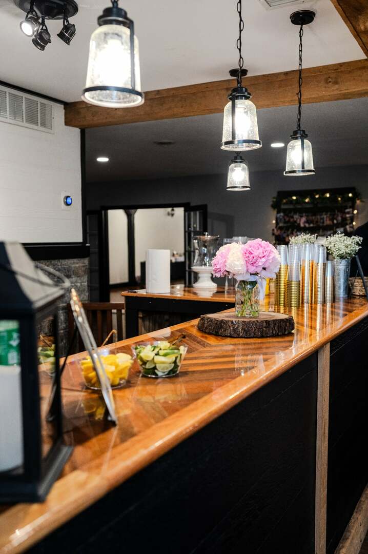 The Red Willow features a beautiful barn-inspired aesthetic, complete with cherry stained barn doors that exude warmth and character. The handcrafted bar top, created by our talented carpenter Randy, adds a personalized touch to the venue’s charm.
