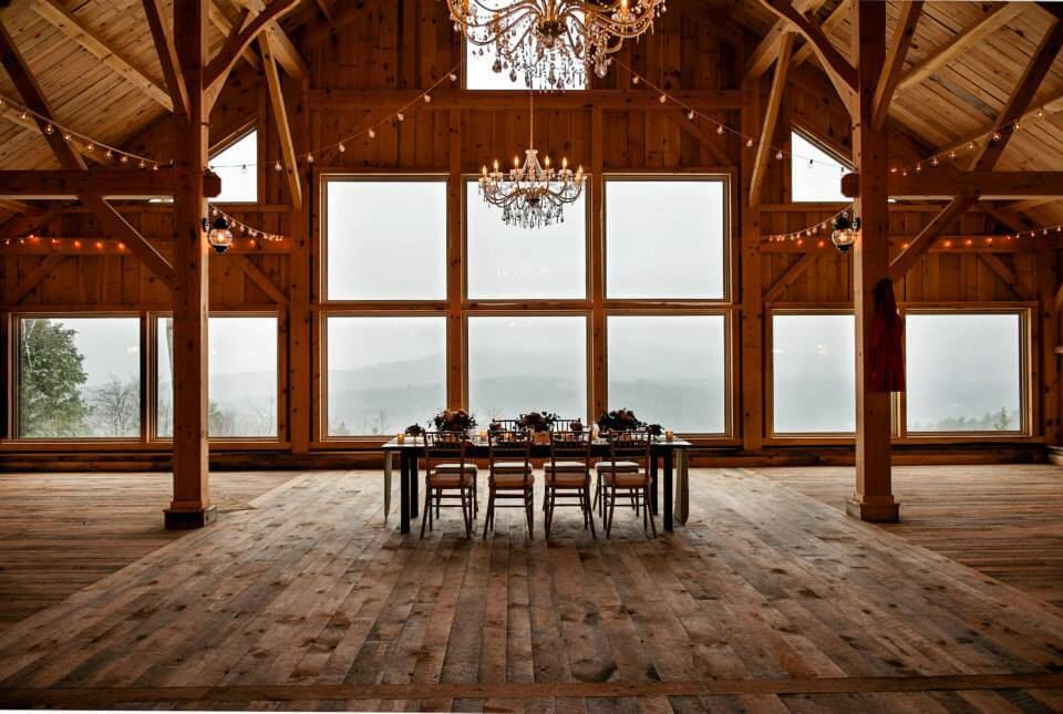 The barn is surrounded by 200 private acres and is a 3,500 square foot finely crafted timber frame barn featuring panoramic mountain views.