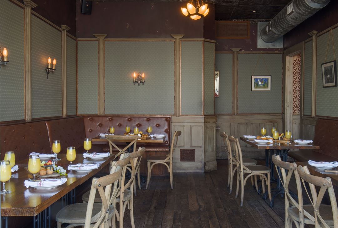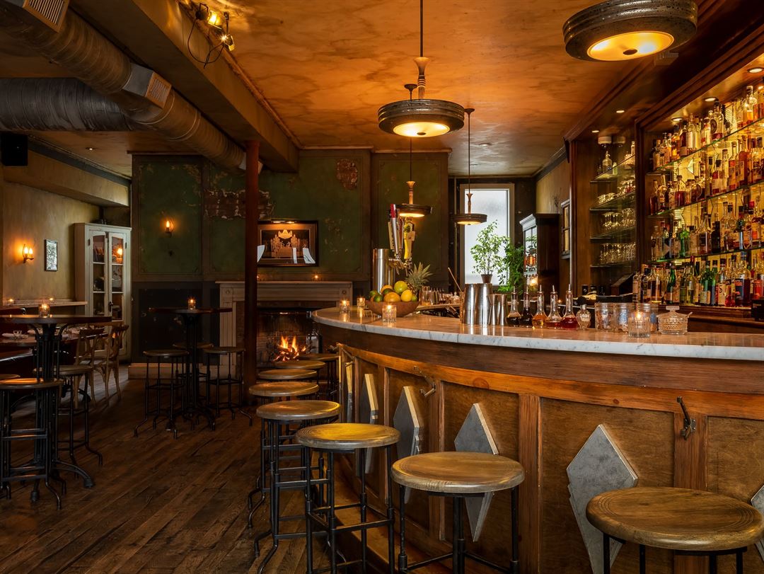 With a Depression Era Speakeasy feel, the space features a curved Art Deco Bar with custom stained glass, a roaring fireplace and plenty of casual seating. Modern riffs on classic cocktails compliment a pub menu which focuses on seasonal ingredients and vegan/vegetarian offerings.