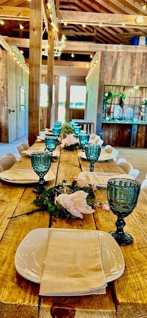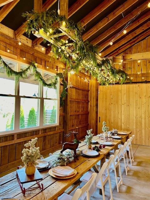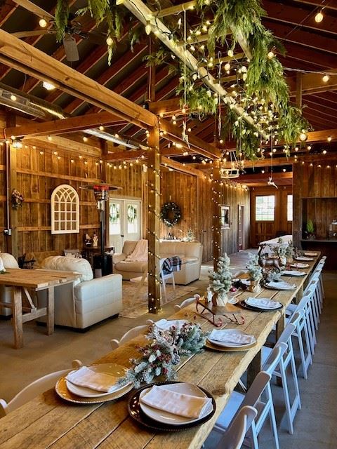 The property is spread across 9 scenic acres and offers ample space for you to unwind and entertain. Our centerpiece is a lovingly restored vintage wooden barn, complete with farmhouse tables, chairs, and twinkling string lights. Choose from our décor and tableware pantry or bring you own supplies - your event will exude charm and elegance.