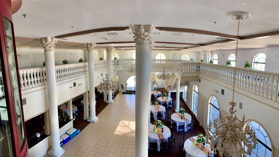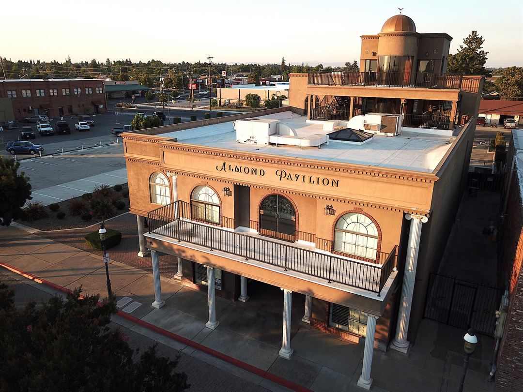 The Almond Pavilion is located in the heart of Oakdale, California. It is a beautifully designed building with custom chandeliers, wrought iron staircases, private parking, full size kitchen, designated bar area, furnished bridal suite in the third level and a show stopping elevator. There is absolutely nothing like this venue in the central valley!