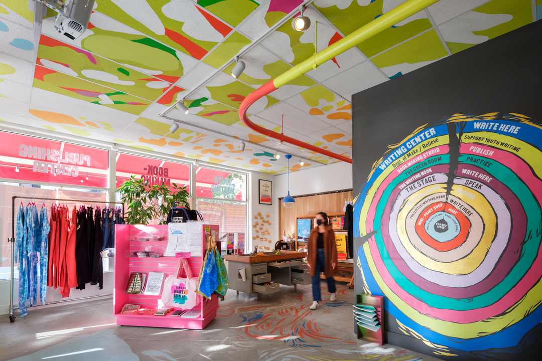 Perfect for creative professionals, nonprofits, educators, and artists, our space comfortably hosts up to 100 guests for conferences, classes, or performances. Every rental directly supports free writing and publishing programs for Oakland youth.
