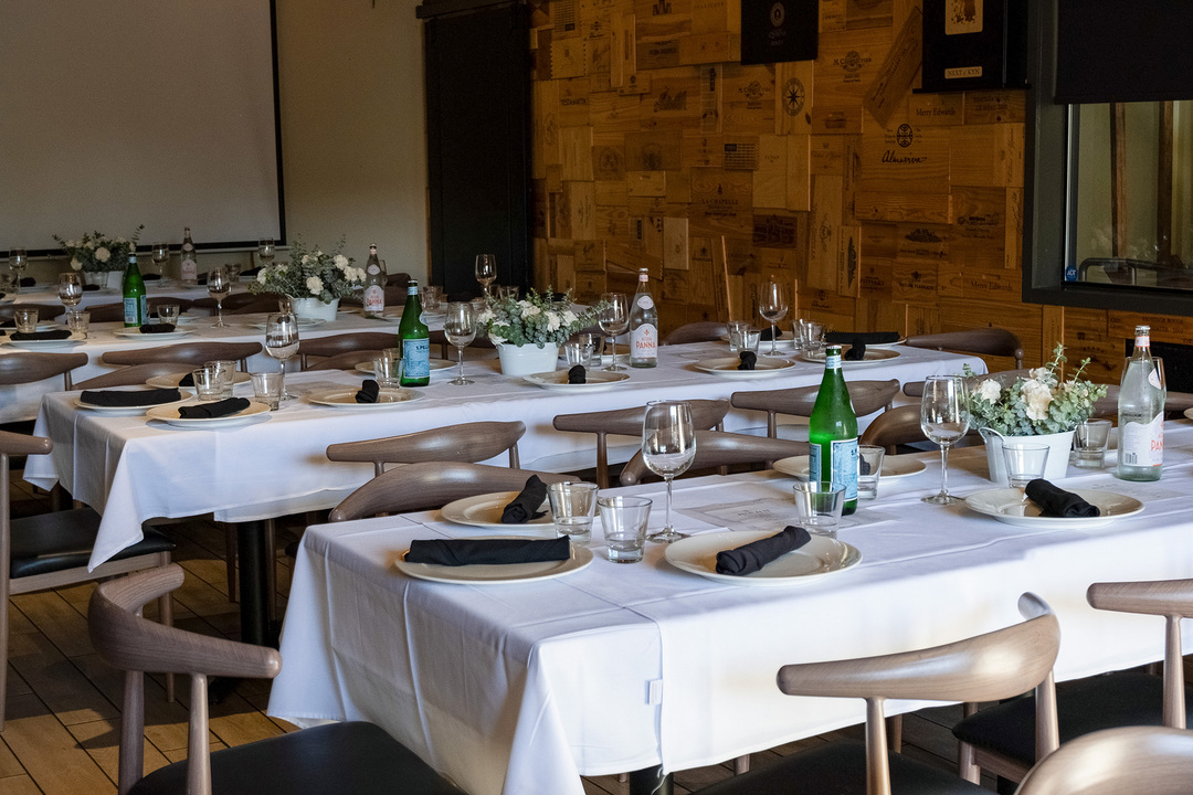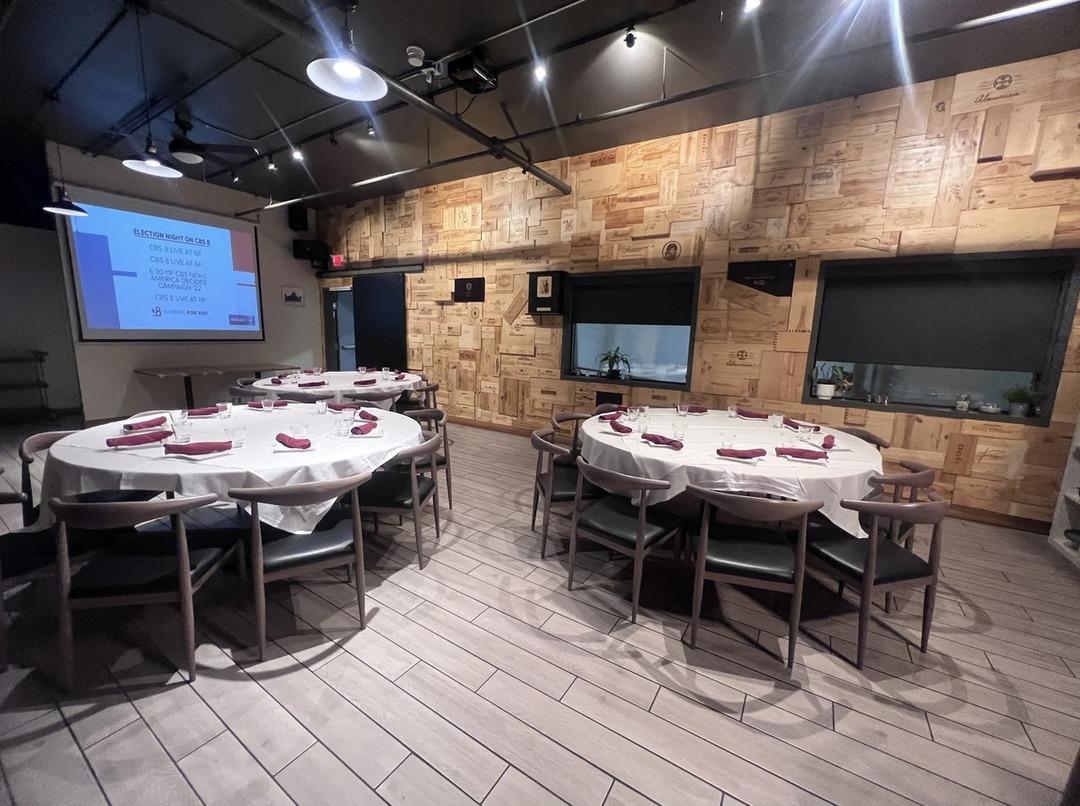 It offers an enchanting private dining experience. Our exclusive private dining room designed with sophistication and warmth, promises an unforgettable setting for your most cherished celebrations. Comfortably accommodating up to 60 guests, our private dining room is perfectly sized for rehearsal dinners or wedding receptions, corporate dinners, baby showers, wine tasting events, anniversary or birthday celebrations.