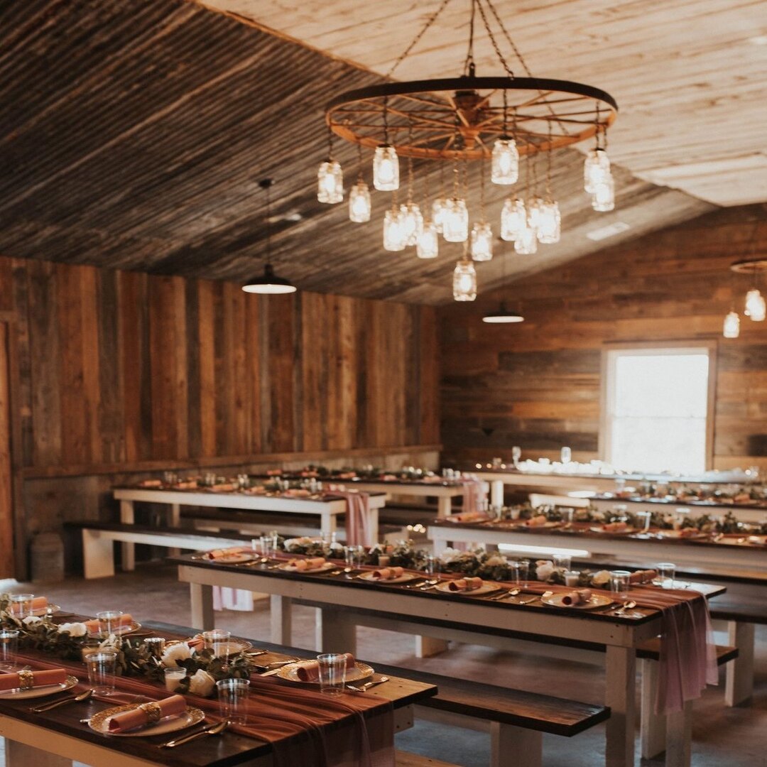 Barn style wedding venue built from reclaimed barn wood on the family farm. The venue offers a panoramic view over the meadows below and into the Ouachita Mountains. Perfect for any outdoor wedding or event!