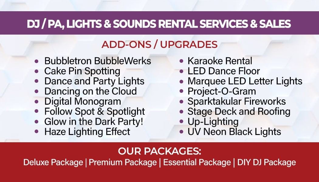 The BeatMasterMobile brings you top quality Music and Lighting Services for different events of any type and size. We offer the best sound and lighting setup for Corporate, Private, School, and Community events, Weddings, Birthdays, and other occasions