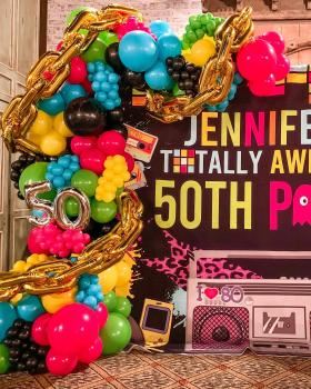 We design custom balloon decor for your special event! Corporate and personal events, we do both! Custom balloon colors to match your theme or brand, custom balloon installations to fit your venue and personality. We do balloon garlands, balloon walls, balloon arches, balloon columns, and more!